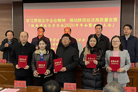 12月31日,陕西省经济学学会2020年年会暨换届大会在省委党校(行政学院)召开。在省社科联的指导下,此次会议主题为“学习贯彻五中全会精神,推动陕西经济高质量发展”,由省经济学学会主办,省委党校(行政学院)、西安邮电大学、陕西现代经济与管理研究院协办。省社科联党组书记、常务副主席郭建树出席并讲话。省委党校(行政学院)校务委员纪昱出席并致辞。省人大常委会财政经济工作委员会副主任杨三省作了题为《学习贯彻五中全会精神,奋力谱写新时代陕西追赶超越新篇章》主题报告。会议回顾了过去五年省经济学学会第十二届理事会的一系列工作,会议表彰了研讨会优秀论文。