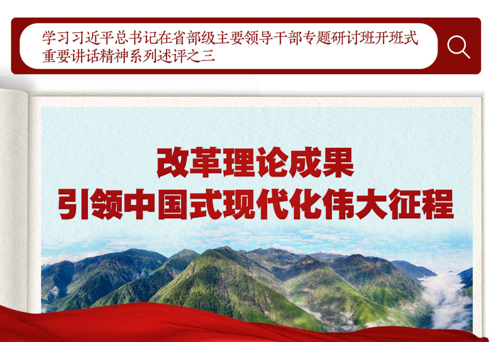 习近平总书记在省部级主要领导干部学习贯彻党的二十届三中全会精神专题研讨班开班式上发表重要讲话,深刻总结新时代全面深化改革取得的历史性成就,深刻阐明进一步全面深化改革的一系列重大理论和实践问题,对坚持守正创新、讲求科学方法、营造良好氛围提出明确要求。