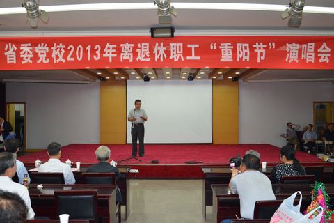 10月9日下午,省委党校举行老干部“重阳节”文艺演唱会。省委党校常务副校长王建中,副校长吴铁和有关处级部门领导以及离退休老同志约130人参加了活动。
