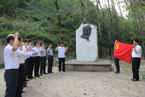 9月11日,王建中同志一行来到位于枣园后沟西山脚下,在“为人民服务”台前举起右手,面对鲜红的党旗和张思德烈士塑像,重温入党誓词,集体诵读《为人民服务》全文,并请延安干部学院李世明教授解读《为人民服务》。