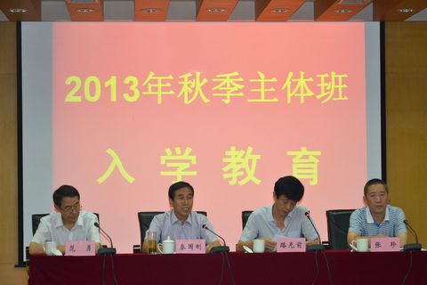 9月2日上午,我校对2013年秋季主体班次学员进行入学教育。副校长秦国刚出席并讲话。教育长路光前主持。进修部主任范勇、培训部主任张珍以及相关教学管理人员和主体班次全体学员参加了入学教育。