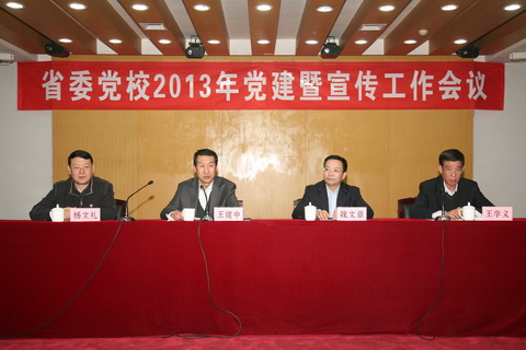 王建中在讲话中对机关党委2012年的各项工作和取得的成绩给予了充分肯定。同时指出,2013年是全面贯彻党的十八大精神的开局之年,也是为全面建成小康社会奠定坚实基础的一年,全校各级党组织要紧紧围绕中央和省委省政府的部署要求,从战略和全局的高度,进一步统一思想、认清使命,以更加科学务实的精神、更加扎实有效的工作,为推动党校各项工作又好又快的发展做出不懈努力。王建中还就党建和宣传工作中的重点问题进行了强调:一是要以认真学习党的十八大精神为引领,在学习型党组织建设上有新成效;二是要以密切联系群众为重点,在工作作风转变上有新加强;三是要以建立健全制度为着力点,在党建工作科学化水平提升上有新起色;四是开展宣传工作要坚持树立政治意识、服务意识、实效意识、责任意识。