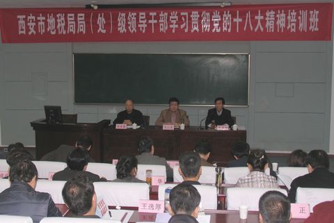 3月6日上午,西安市地税局第一期局(处)级领导干部学习贯彻党的十八大精神培训班在我校开班,副校长秦国刚出席致辞并为培训班讲授第一课,市地税局党委书记王江宏出席作动员讲话,外培训部主任史永昌主持。