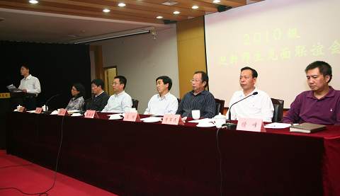 10月9日下午,我校2010级脱产研究生迎新师生见面会在学苑大厦一层多功能厅举行。省委党校副校长秦国刚、高锋、宦洁,副巡视员兼教育长李军民出席。校学位评定委员会委员、教研部主任、各专业硕士生导师以及相关部门负责人、研究生部班主任和脱产班全体学生共200多人参加了见面会。会议由研究生部主任辛荣主持。