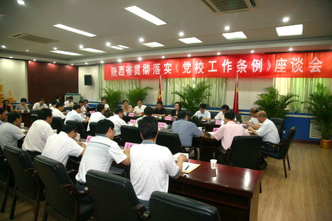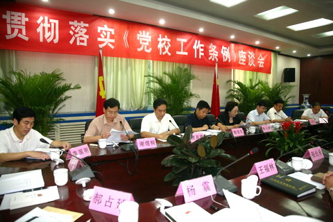 座谈会上,西安、咸阳、宝鸡、铜川、渭南等十市及区(县)党校负责人汇报了贯彻落实《党校工作条例》和全国党校工作会议精神的情况。并就推进党校教育规范化、解决干部工学突出矛盾、整合教育培训资源、定期召开全国党校工作会议、建立严格的考核体系和标准、中央党校定期组织骨干教师培训、同级党校常务副校长的待遇问题的解决、加大中青年干部和后备干部培训、加大基础建设设施投入等方面进行了交流发言。