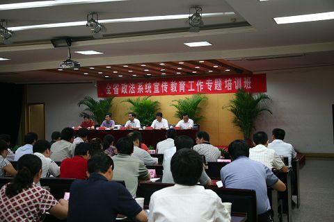 按照全国、全省政法工作会议精神和中央有关宣传思想工作的重要部署,全省政法系统宣传教育工作专题培训班于7月2日至6日在陕西省委党校举办。7月2日,培训班举行开班式。省委政法委副书记郭明、刘自成,省委党校副校长秦国刚,政法委综合治理办公室主任胡跃宏,省维护稳定办公室副主任张荣博出席了7月2日的开班式,刘自成主持开班式。